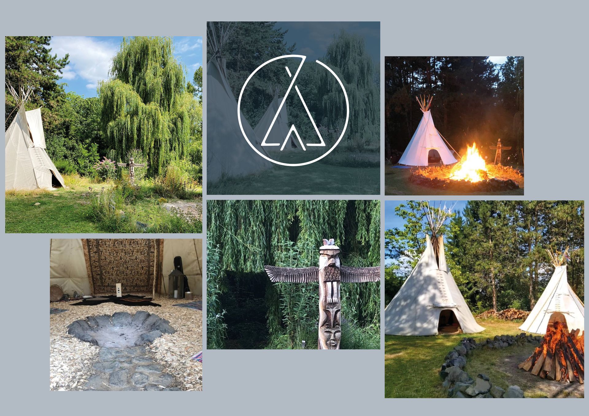 Logoentwicklung mit den abstrahierten Elementen Tipi-Zelt und Lagerfeuer, die sich in einem offenen Kreis linear integrieren..